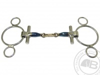 The T-Bar 3 Ring was developed by Bomber for Polo, it will have the same effect as the traditionall Fulmer in that it will prevent pinching on the sides of the mouth however the shortened and extended pins above and below the bit prevent the bit firstly being pulled through the mouth and secondly has the effect of guiding the the horses head into the direction the bit is facing which is great for schooling and training purposes.