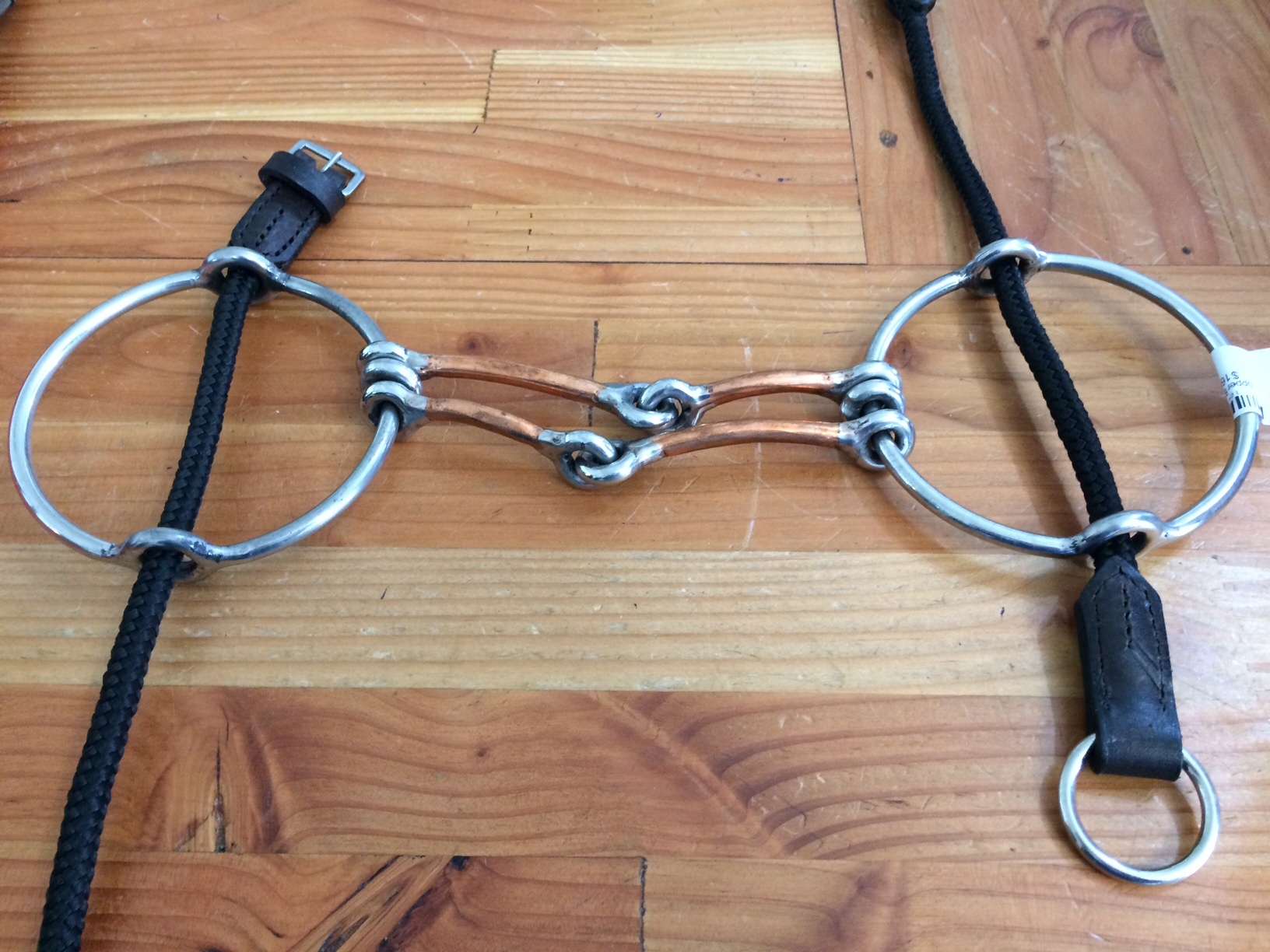 Copper loose ring Barry gag - Large stainless rings with copper coated mouthpiece including black gag runners